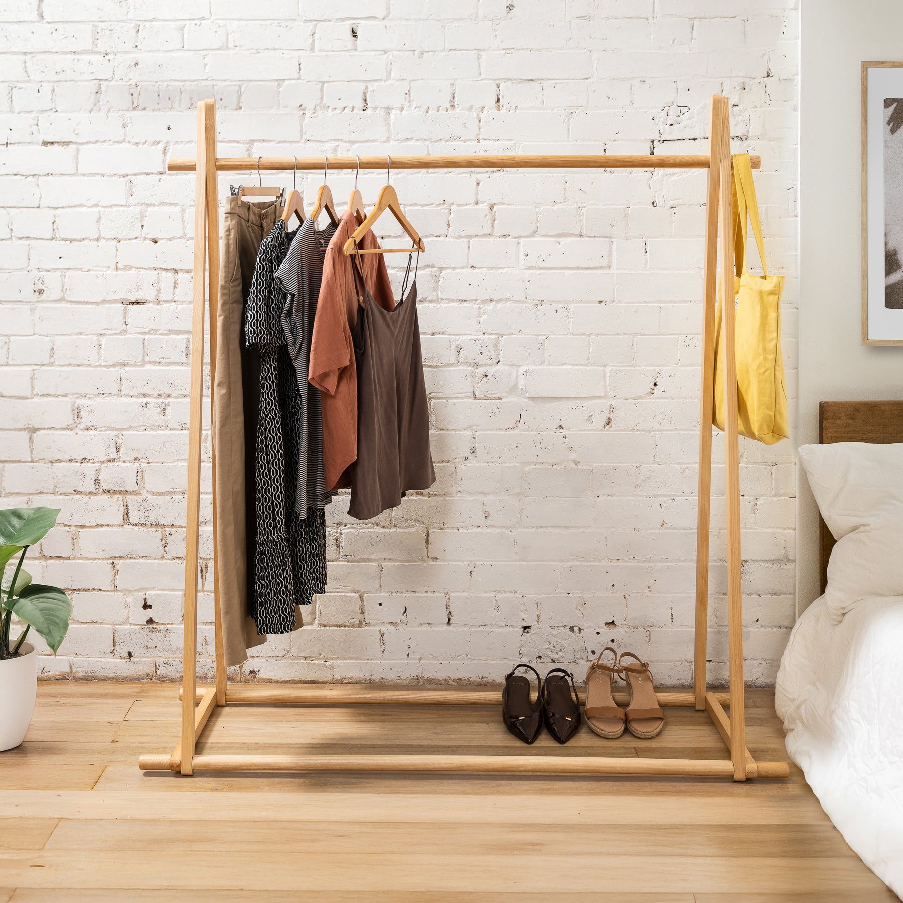 N2 Heavy-Duty Solid Ash Wood Clothing Rack (100kg Weight Capacity) – Extra Long & Thick Rails Sold in 1/3